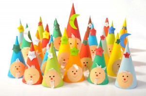 Vidám időtöltés a kalendárium készítés, ha a gyerekek is részt vesznek benne. Készítsetek együtt kúp alakú figurákat. Egy négyzet alakú lapból egyszerű tekeréssel elkészíthetitek a testet, majd ragasszátok össze. A gyerekek rajzolják meg az arcokat és készítsétek el a számokat is 1-24-ig.